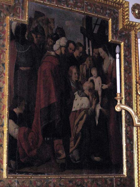 Relieve del "Calvario", de mediados del siglo XVIII, existente en la Sacristía. Se trata de una muy buena talla que procedía del cementerio viejo. Está firmada por la parte trasera por el escultor francés apellidado Adam. La concepción de la talla es barroca, pero con un tratamiento exquisito de anatomías y paños.