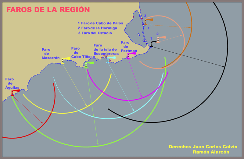 Murcia no es la excepción y sus 8 faros tienen alcances que se solapan entre sí (figura 4).