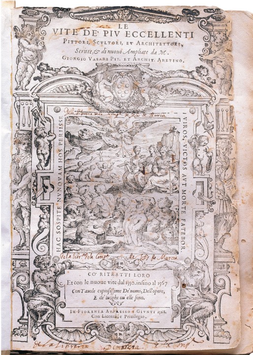 No deja de sorprender que los prelados se interesaran por los contenidos de las biografías artísticas redactadas por Giorgio Vasari o que se dejaran tentar por los nuevos planteamientos modulares que el cánon proporcional de Alberto Durero planteaba. Las obras de estos dos grandes tratadistas se encontraban entre los libros que suscitaron el interés de los obispos, demostrando que se sentían fascinados por los ecos de la cultura visual y artística del Renacimiento. Ambos libros fueron aportaciones decisivas en la historiografía europea del siglo XVI por razones distintas. La obra de Vasari porque, con el género biográfico, iniciaba una teoría artística nueva en la que se resumían los ideales de belleza de su época, los conocimientos básicos de una incipiente historia del arte y sus propias reflexiones sobre la naturaleza de las artes. Al texto en que contaba la vida de cada personaje añadió en la edición presente –precisamente la más valiosa por su rareza, la de 1568– el retrato del artista, uniendo de esta forma efigie y laudatio dentro del más puro de los estilos retóricos que consagraron tratadistas posteriores.