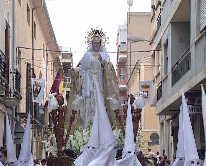 La Virgen vestida de luto preside el Santo Entierro de Jesús, dándole todo el pueblo simbólicamente el pésame.