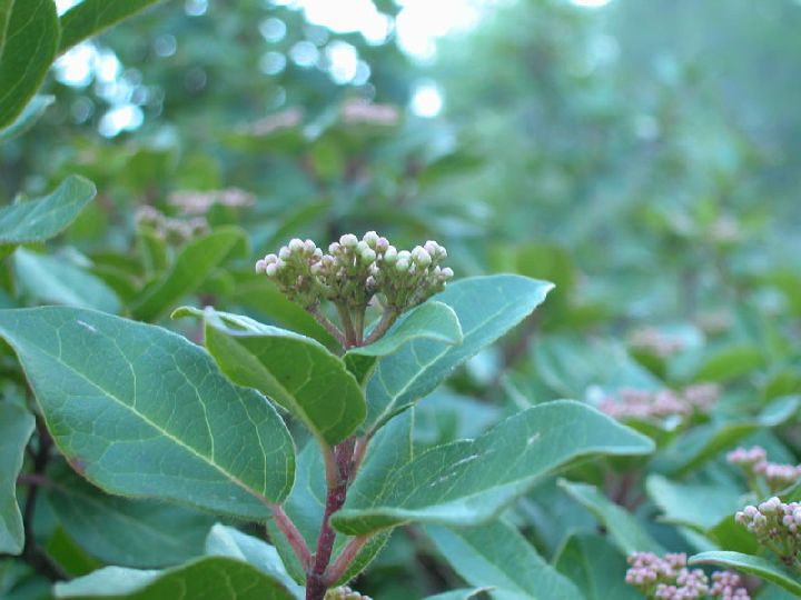 El durillo es un arbusto de gran tamaño de hasta 7 m de altura y muy ramificado, perenne, de hojas simples, enteras, duras y persistentes, que se distribuyen de forma opuesta. Éstas son de gran tamaño (de hasta 10 cm de largo y 4-5 cm de ancho), de forma oval o elíptica y agudas en la punta (el ápice), de un color verde muy oscuro y brillante por el haz.